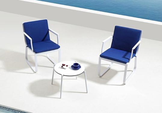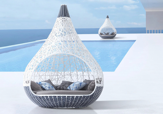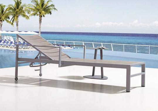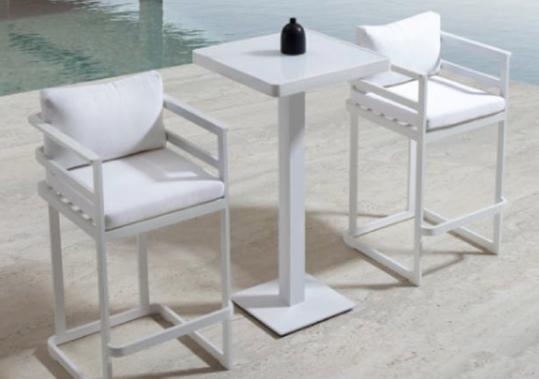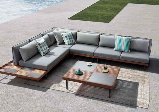 Sintered glass with a stone-like surface or color dyed reflective glass surfaces will make sure your furniture is picture perfect in any weather.
